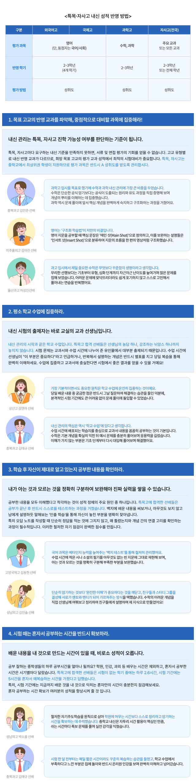 »õ ÇгâÀÌ ½ÃÀÛÇÑ Áö ¾ó¸¶ ¾È µÈ °Í °°Àºµ¥, ¹ú½á 1Çбâ Áß°£°í»ç¸¦ ¾ÕµÎ°í Àִµ¥¿ä. Ư¸ñ, ÀÚ»ç°í¸¦ Áö¿øÇϰíÀÚ ÇÏ´Â »óÀ§±Ç ÇлýÀº ²Ä²ÄÇÑ ³»½Å °ü¸®°¡ Àý½ÇÈ÷ ÇÊ¿äÇÑ ¶§ÀÔ´Ï´Ù. ÀÚÄ© À̹ø Çб⿡ ¸¸Á·ÇÒ ¸¸ÇÑ ¼ºÀûÀ» ¹ÞÁö ¸øÇϸé, ¸ñÇ¥ °í±³ ÁøÇÐÀÌ ¹°°Åǰ µÉ ¼ö Àֱ⠶§¹®Àä. Ư¸ñ, ÀÚ»ç°í¿¡ ÇÕ°ÝÇÏ·Á¸é Çб³ ½ÃÇè¿¡¼ ÁÁÀº °á°ú¸¦ º¸¿©¾ß Çϱ⿡ Ư¸ñ,ÀÚ»ç°í¿¡ ÇÕ°ÝÇÑ ¿Â¸®¿ø ¼±¹èµéÀÇ Â÷º°ÈµÈ ³»½Å °ü¸® ºñ¹ýÀ» ¾Ë¾Æº¸¾Ò½À´Ï´Ù.